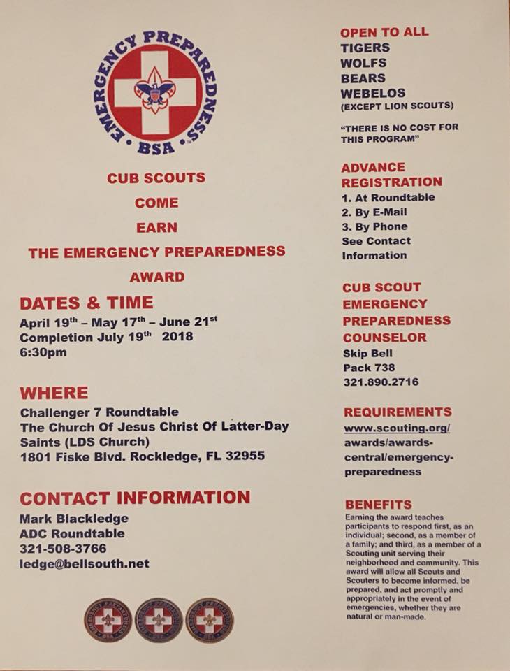Come And Earn The Cub Scout Emergency Preparedness Award.